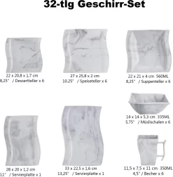 Sänger SÄNGER Porzellan Geschirrset Bilgola Black Lines, Tafelservice 18 Teilig Für 6 Personen